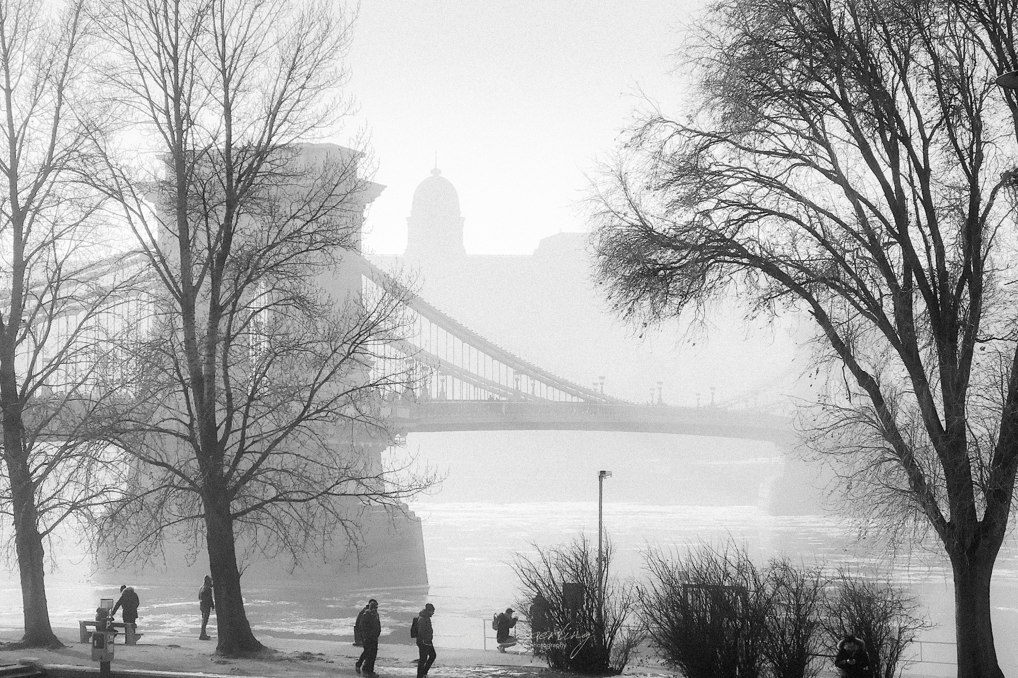 ich stehe hier an der Straßenbahnhalte “Rudas Gyógyfürdő” direkt unterhalb der Erzsebet Brücke. Ich lasse das Auge schweifen – mein Blick stoppt auf Kettenbrücke und Parlament. Ich rahme mit Brückenkorpus und Donauufermauer. Foto aufgenommen mit Canon FL 55/1.2 an Sony Alpha 6500