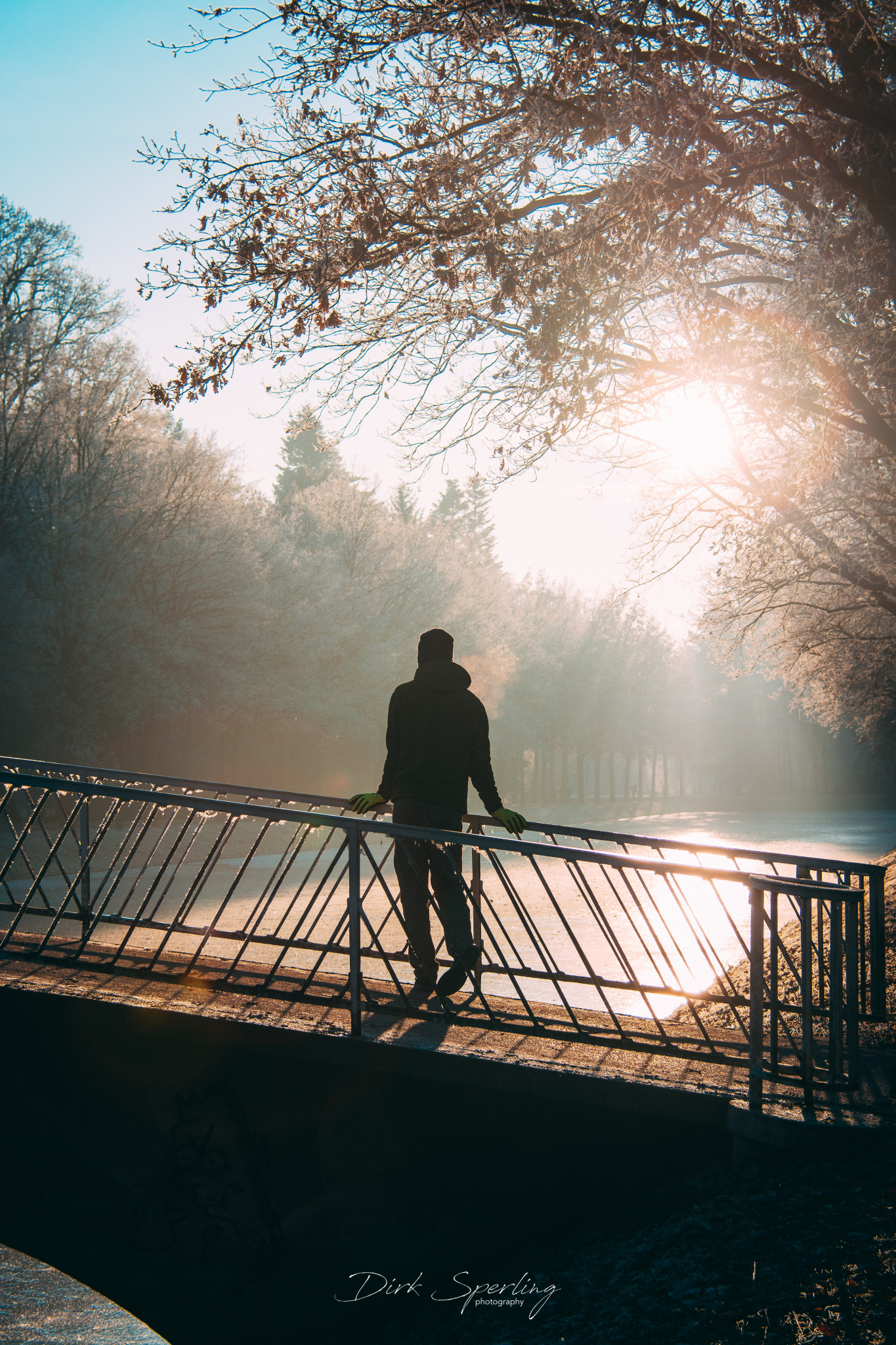 Man seeking for calmness and warmth in the light of glaring winter sun. Seen in Karlsaue, Kassel, Hesse Germany Photo taken with Nikon D7100 and Nikkor AF-S 18-300/3,5-5,6